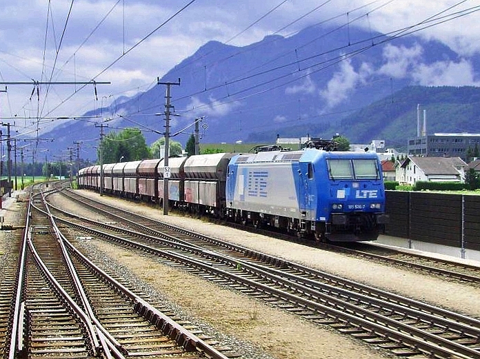 Die LTE 185 528 stand heute in Frastanz mit dem RTS-Schlackezug um 10.38 Uhr. Aus dem ÖEC 164 fotographiert.