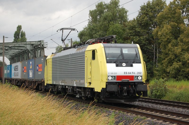 E 189 202 am 09.07.2009 kurz nach Überquerung des Mittellandkanals bei Peine