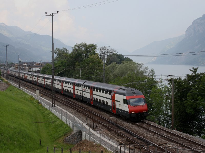 Ein IC am 01.07.2009 bei der Durchfahrt in Unterterzen in Richtung Chur.
