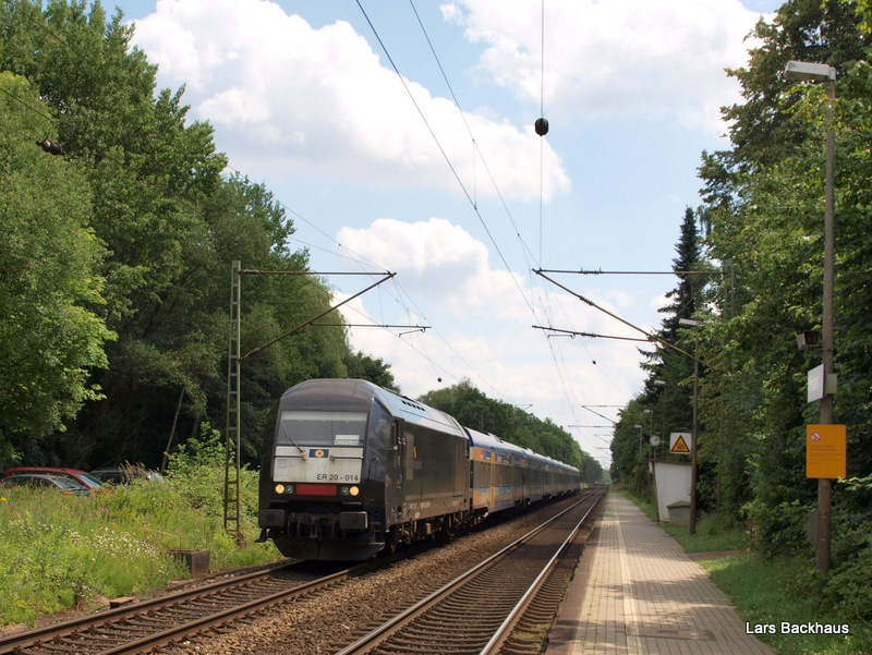 ER 20-014 durchfährt am 6.07.09 mit ca. 140 km/h und der NOB 80514 nach Westerland/Sylt Prisdorf Richtung Elmshorn.