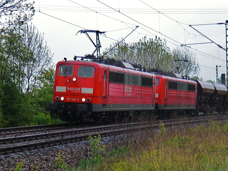 Hier eine Doppeltraktion mit zwei 151 bei Strömenden Regen. Da heists nur schauen das kein Tropfen auf die Linse kommt. (29.04.2009, Manolding)