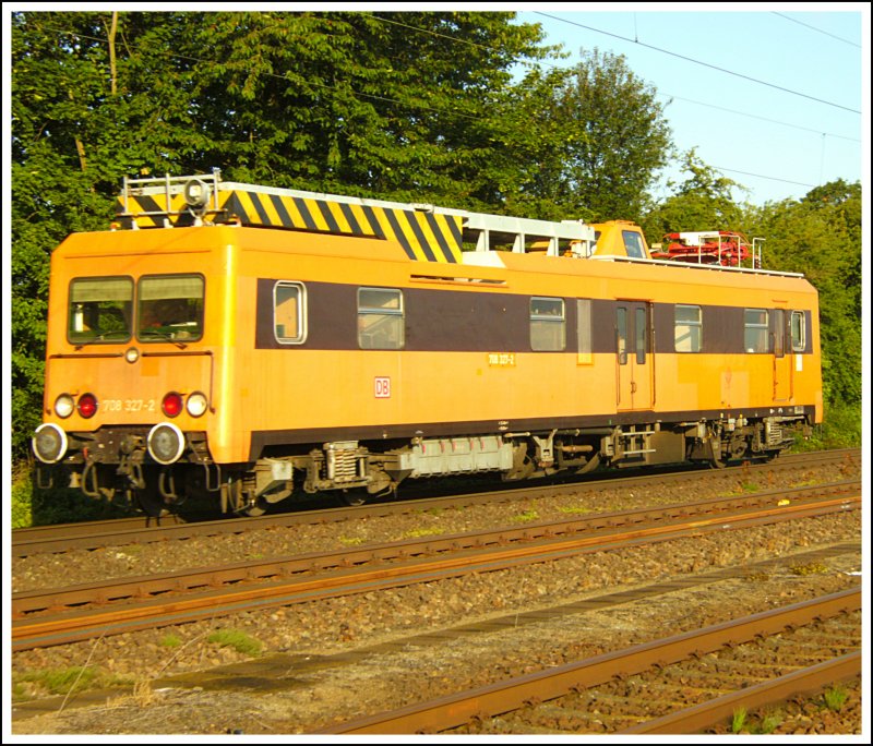 Hier ein Oberleitungsmessfahrzeug (708) das in Mangolding am 07.07.2009 um ca. 06:10 halt erwarten musste.