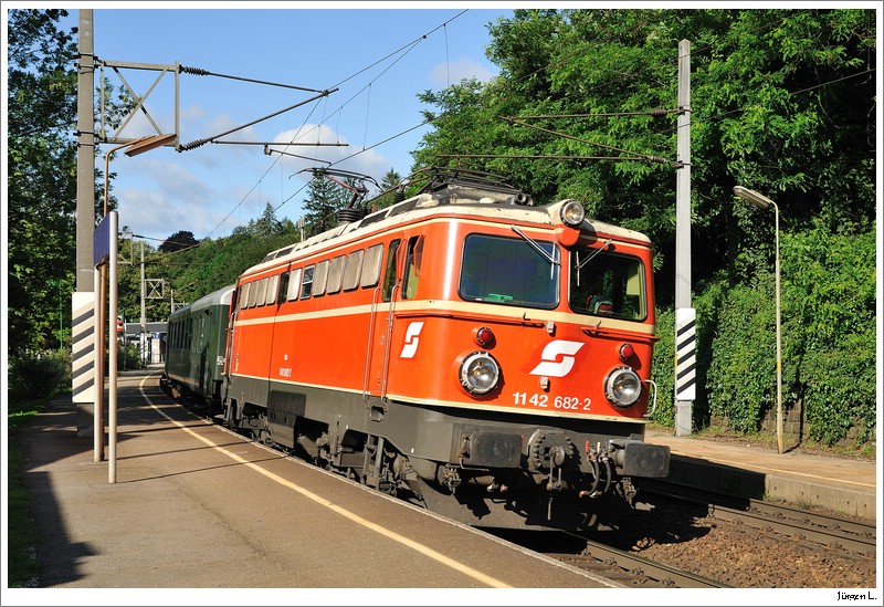 Schön überrascht war ich als am 9.7.2009 in Eichgraben diese Perle daherkam. 1142.682 mit EZ5918 (Wien-Passau).