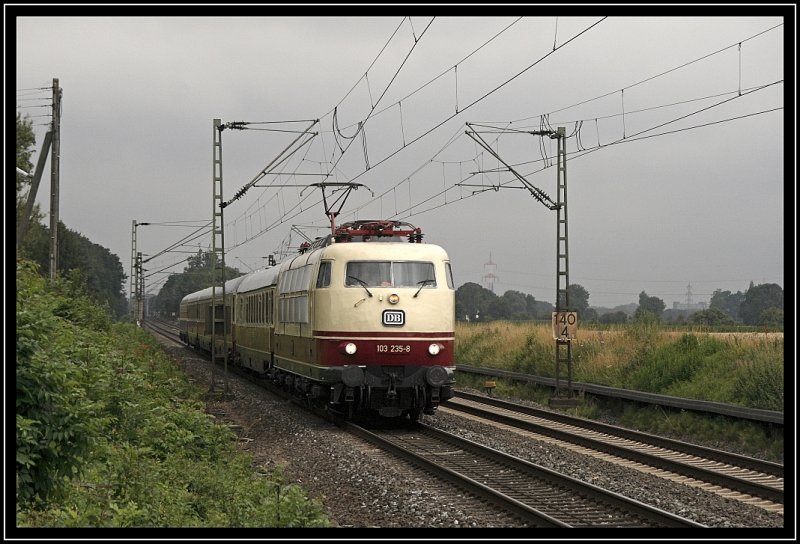103 235 ist mit dem 91341 nach Posen unterwegs. Aufgenommen bei Nordbögge. (11.07.2009)