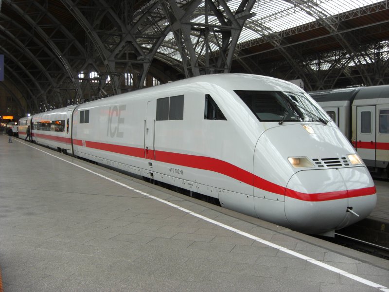 Am 11.03.08 steht der Mess-ICE BR 410 102-8 und BR 410 101-0, am anderen Ende, zur Messfahrt bereit.