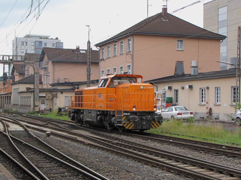 Diese MaK G 1700 DE82 der HGK überquert sofort die Rheinbrücke, aufgenommen am 07.07.2009