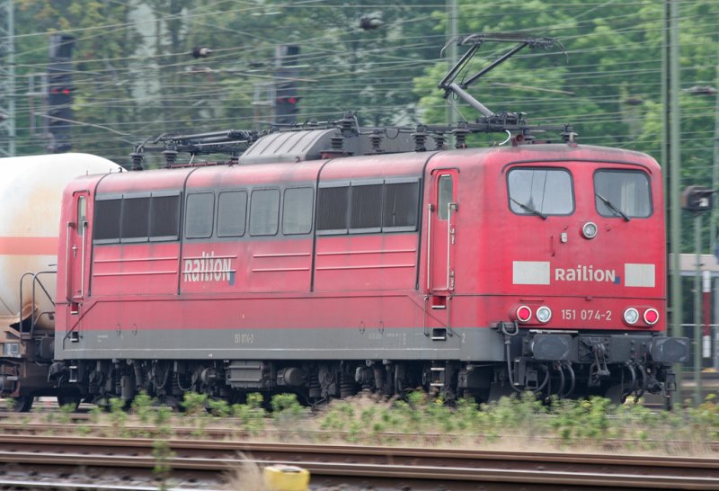 Die starke BR 151 074-2 im Nachschiebe Dienst, bisher auch nur selten gesehen, aufgenommen am Morgen des 08.07.2009 in Aachen West