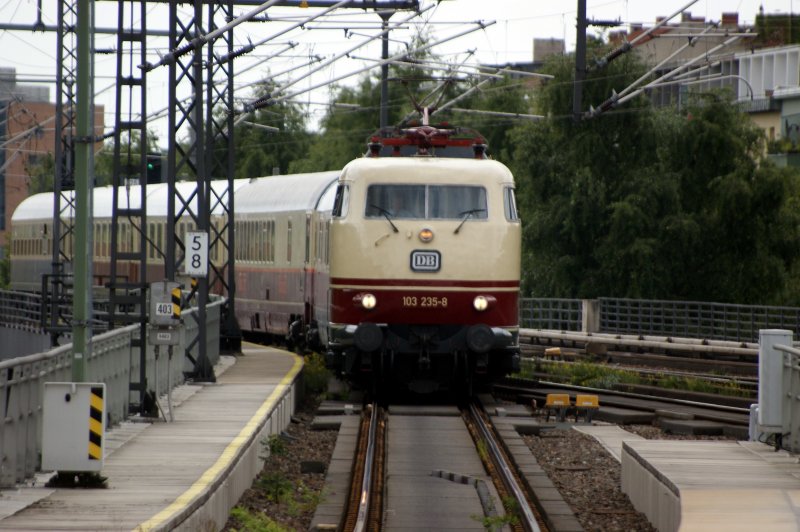 Bahnbildertreffen in Berlin am 11.07.2009. Der 101 121 als "Spitze" im Berliner Hauptbahnhof
