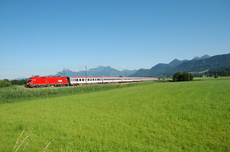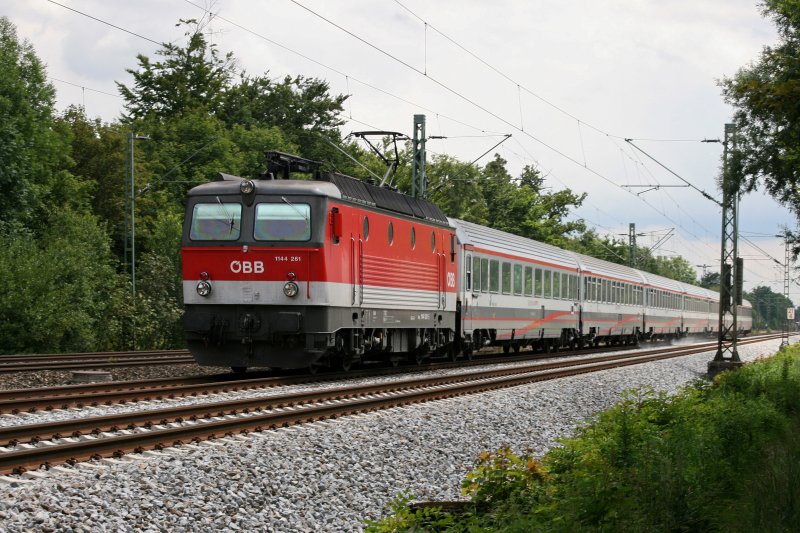 Eine absolute Seltenheit sind Einsätze der Reihe 1144 vor Fernverkehrszügen nach Deutschland. Am 11.07.2009 bespannte 1144 261 den EC 188 und wurde in Haar abgelichtet.