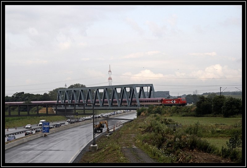 Eine unbekannte 145er ist am 11.07.2009 in Sonderzugdiensten eingeteilt und überquert bei Kamen die A2 in Richtung Hamm(Westf).