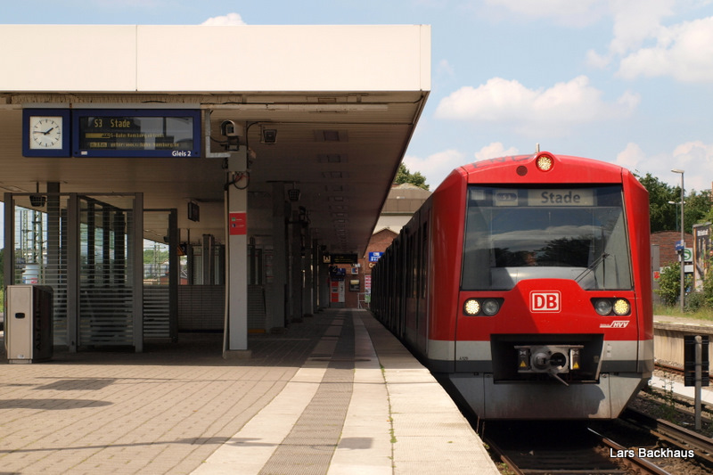 Gähnende Leere herrschte am 6.07.09 in Pinneberg kurz vor Abfahrt der S 3 nach Stade. Von Pinneberg bis Hamburg-Elbgaustraße fährt der ET 474 als Halbzug, ab Elbgaustraße dann als Vollzug nach Stade.