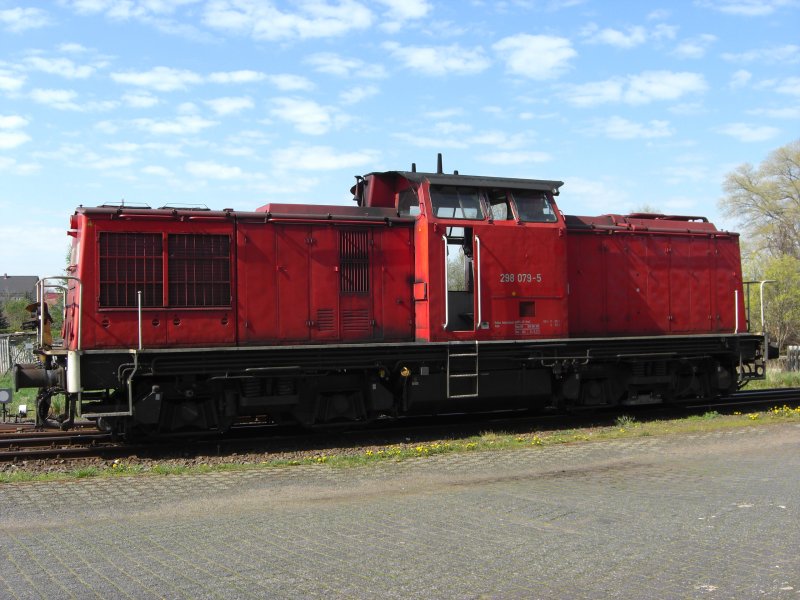 Gerade ist BR 298 079-5 aus dem haldenslebener Stadhafen (UHH) wieder in den Güterbahnhof Haldensleben zurückgekehrt. (23.04.08)