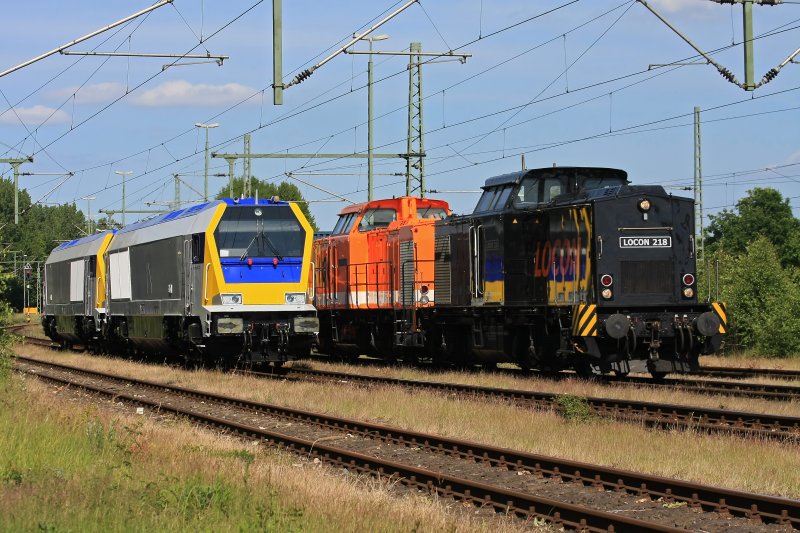 LOCON Loks 216 und 218 treffen am 17.06.2009 auf Voith Maxima 40 CC in Kiel im Rbf.-Meimersdorf.