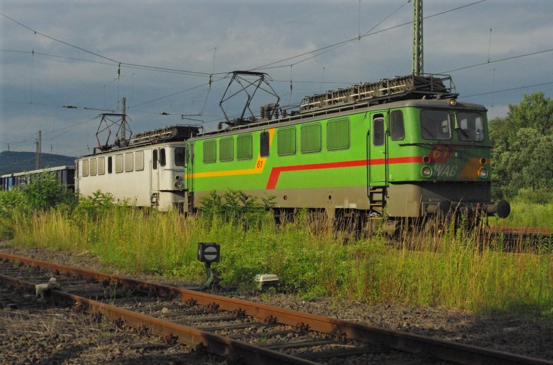 Lok 61 und 50 der WAB ziehen einen Eoas Zug in Fahrtrichtung Süden durch Eschwege West. Diser Zug kam die letzten Donnerstage immer um die gleich Zeit nur am 09.07.2009 etwas fürher als erwartet