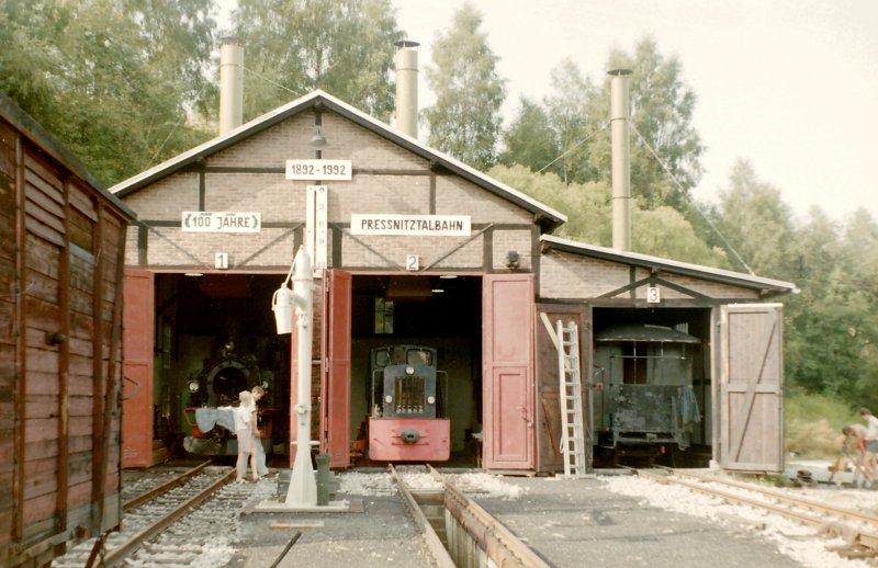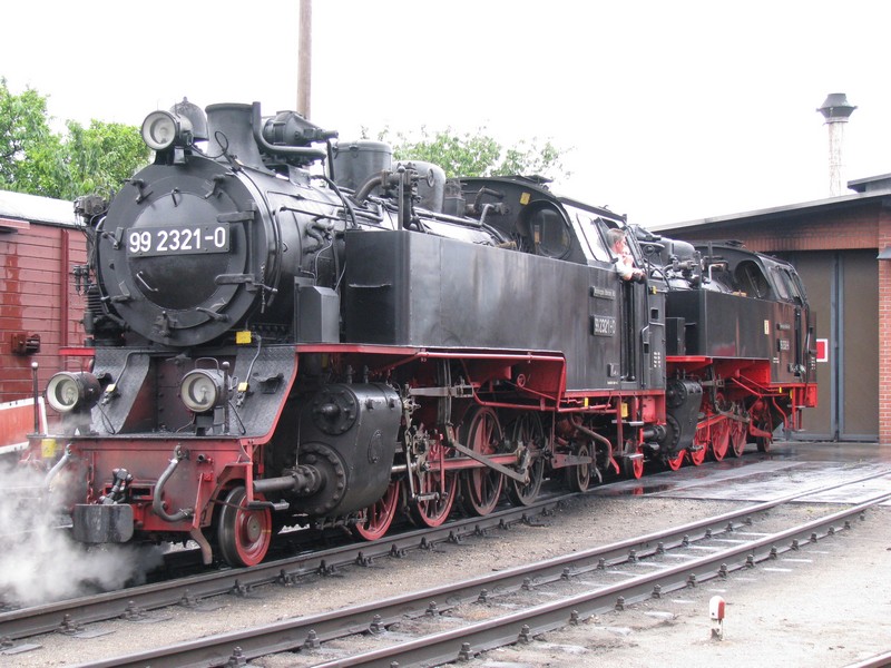 MOLLI-Dampflok BR 99 2321-0 zieht Lok BR 99 2322-0 aus dem Lokschuppen zur LOKPARADE, Kühlungsborn-West 10.07.2009