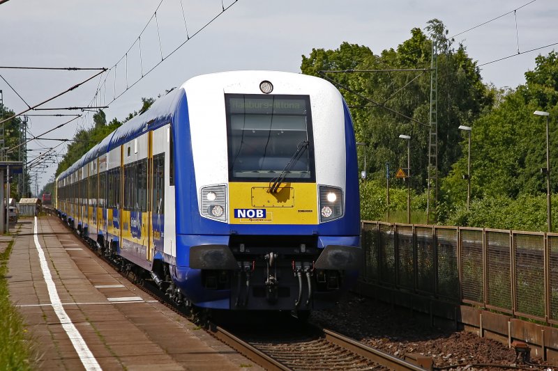 NOB mit einer schwarzen ER 20-014 am 30.05.2009 Richtung Westerland. Bei der Durchfahrt durch den Bf. Tornesch.
