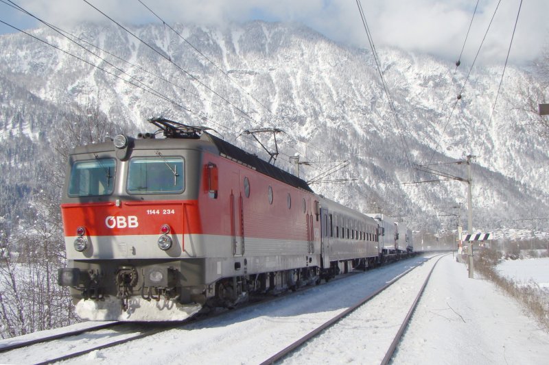 Regensburg-Trento Rola wurde bespannt mit 1144 234.Die fast leere Zug verkehrte am 19.02.2009