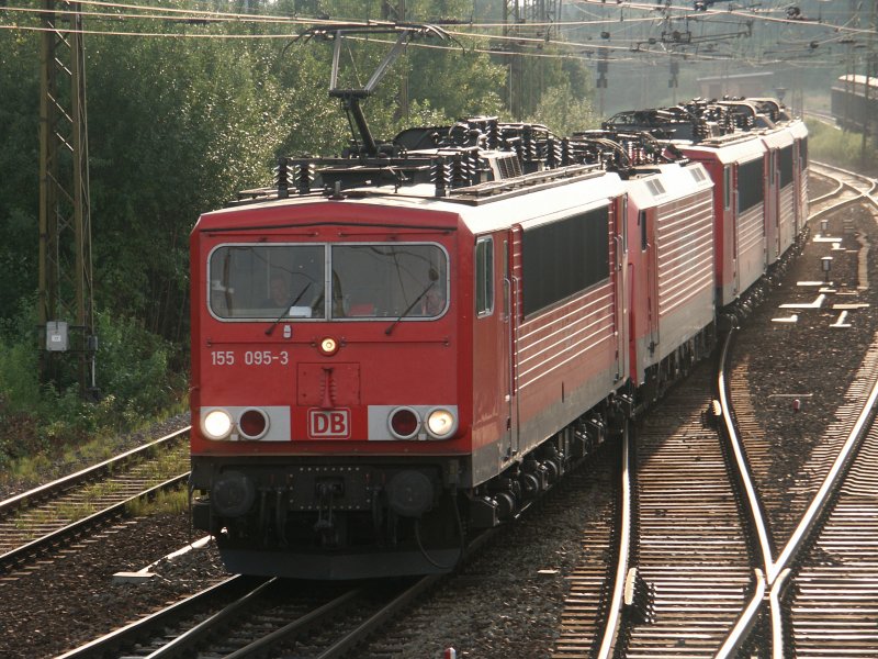 Schöner Lokzug bestehend aus 155 095-3 , 189 056-5 , 155 113-4 , 155 070-6 , und am Schluß die 155 201-7 bei Durchfahrt durch den Bf. Riesa