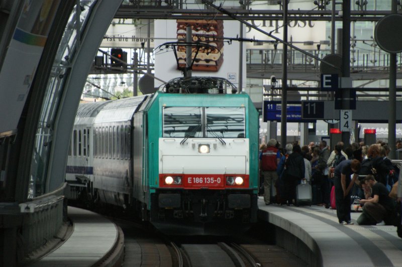 Warschau Express mit 186 135-0 bei der Einfahrt auf Gleis 11 im Berliner Hauptbahnhof