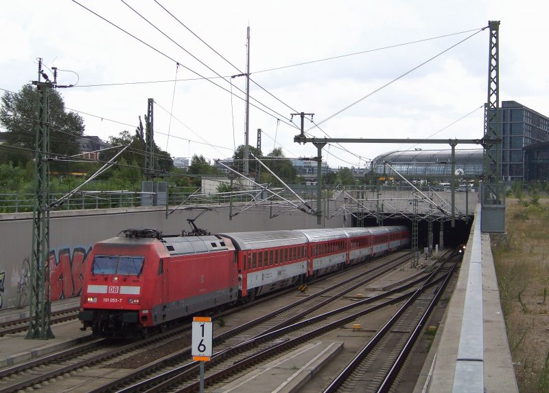 101 053-7 kommt hier mit dem EC 178 aus dem Berliner Hbf rausgefahren. 11.07.2009