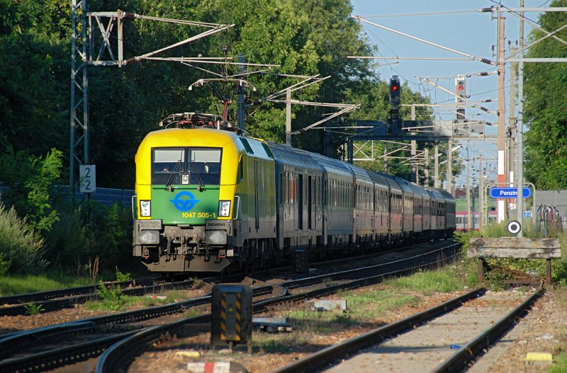 1047 505 war am 12.07.2009 vor D 347 "Dacia" (Wien Westbahnhof- Bukarest) bis Budapest keleti pu. vorgespannt. Die Aufnahme entstand in Wien Penzing, hier hatte der Zug bereits 25 Minuten Verspätung.