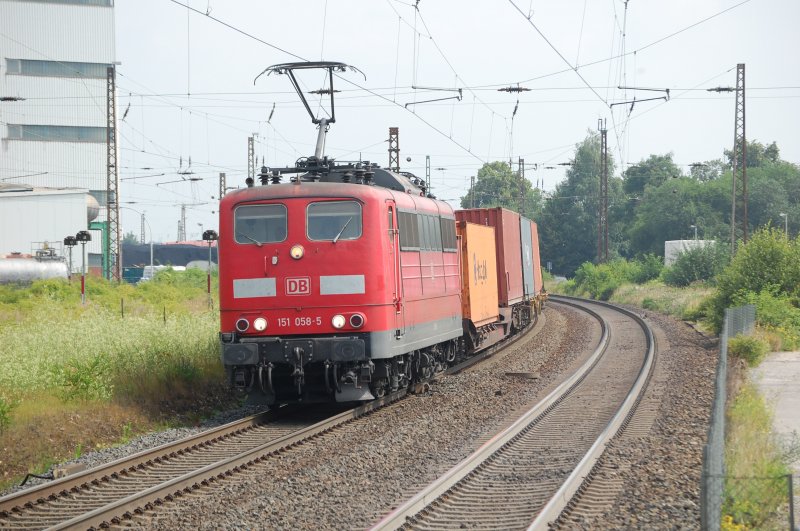 151 058 mit einem Containerzug am 1.7.2009 durch Nordstemmen -> Süden