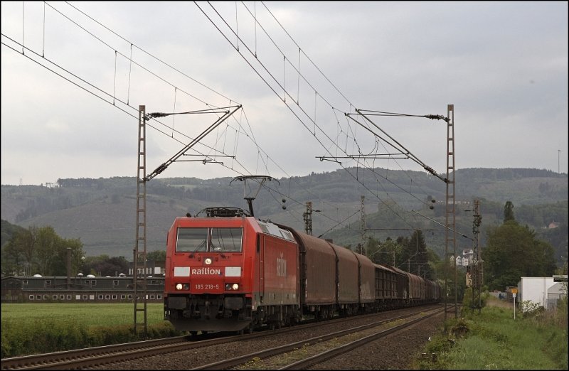 185 218 ist mit dem abendlichen 52296 von Finnentrop/Plettenberg in Richtung Hagen unterwges. (08.05.2009)