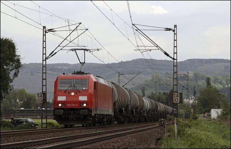 185 315 (9180 6185 315-9 D-DB) schleppt einen unbekannten Kesselzug über die Ruhr-Sieg-Strecke in Richtung Hagen. (08.05.2009)