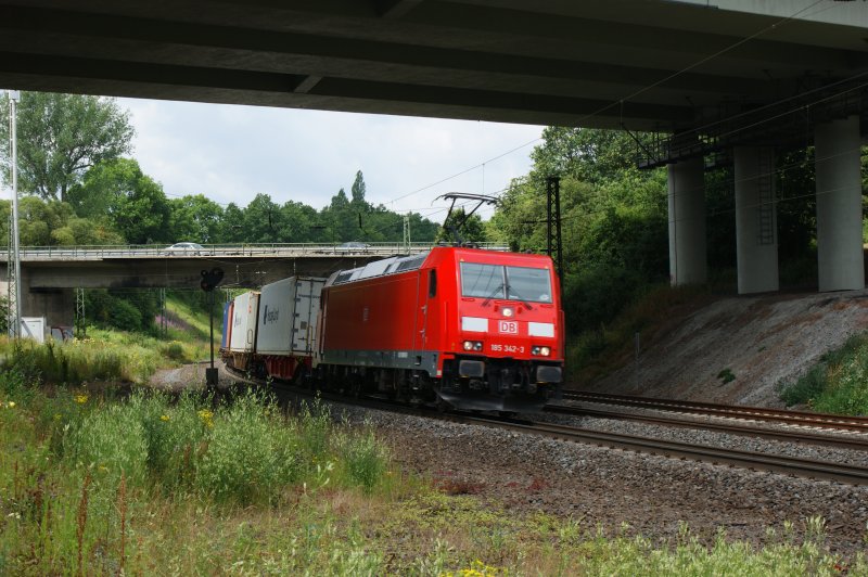 185 342-3 fährt mit einen Containerzug bei Fulda Richtung Norden am 11.07.2009