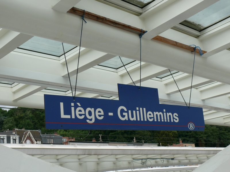 Alles ist im neuen Bahnhof von Liège-Guillemins noch nicht fertig, aber zwischenzeitlich erfüllen auch einfache Mittel den Zweck. Hoffentlich erinnert man sich auch beizeiten, dass hier noch etwas ausgebessert werden muss. Aufgenommen am 12/07/2009.