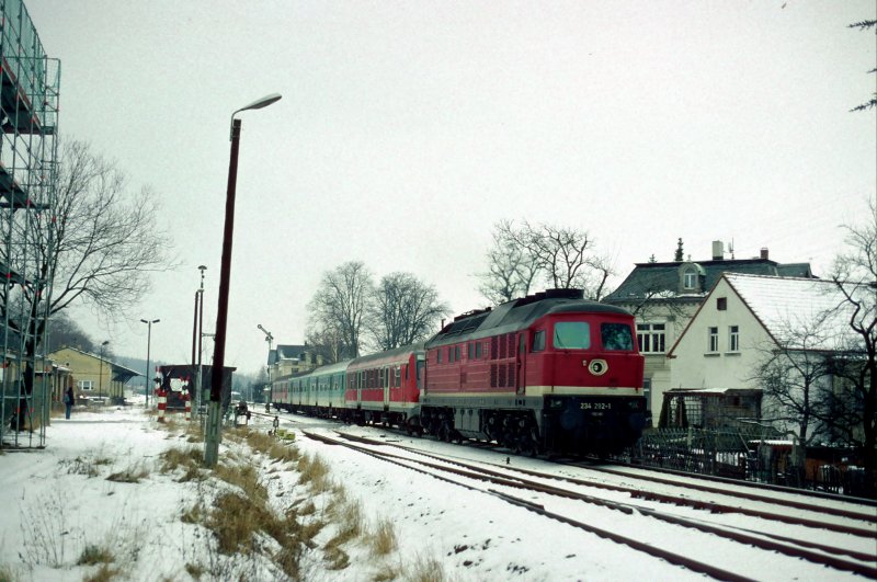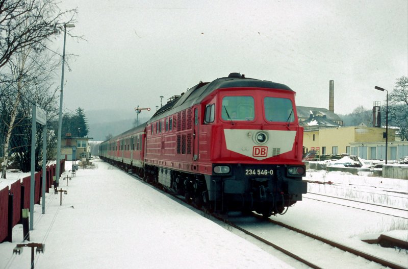Am 29. Dezember 1999 faehrt 234 546-0 mit einer RegionalExpress aus Zittau durch Neukirch Ost.