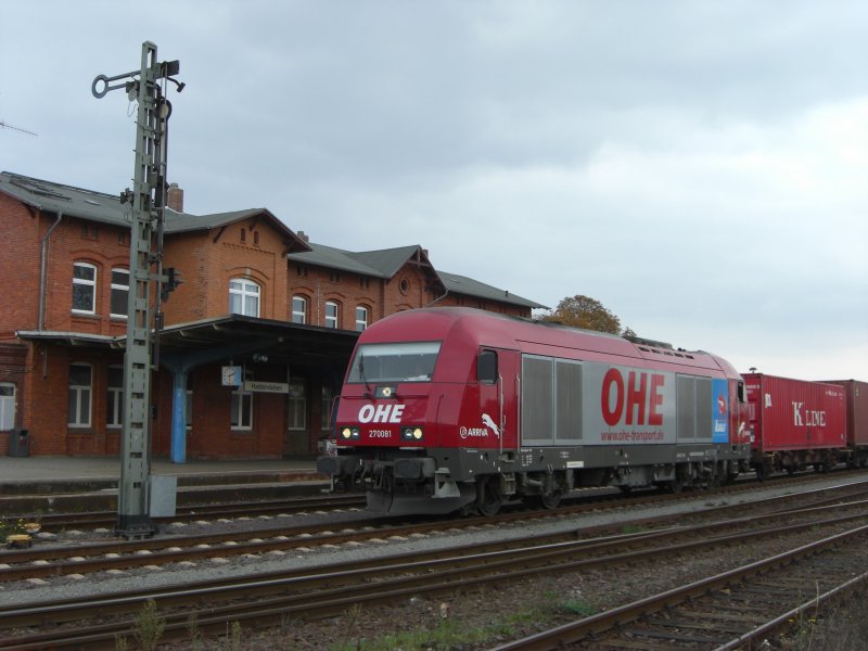 BR 294 702-6 fährt nachdem sie ihren Zug gebildet hatte nach Forsthaus Eiche aus. Neben ihr steht noch OHE 270081, die in richtung Oebisfelde bald verschwinden wird. Zuvor hatte ich den Zug schon in Halle (Saale) gesehen. (Haldensleben 14.10.08)