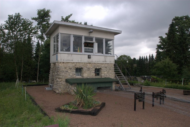 Das Foto zeigt das Stellwerk der ZLSM (Museumsbahn)in Simpelveld (NL)