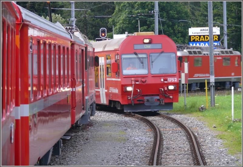 Triebwagen 1712 der Rhätischen Bahn steht als Regionalzug nach Thusis abfahrtbereit im Bahnhof Chur. (6.7.09)