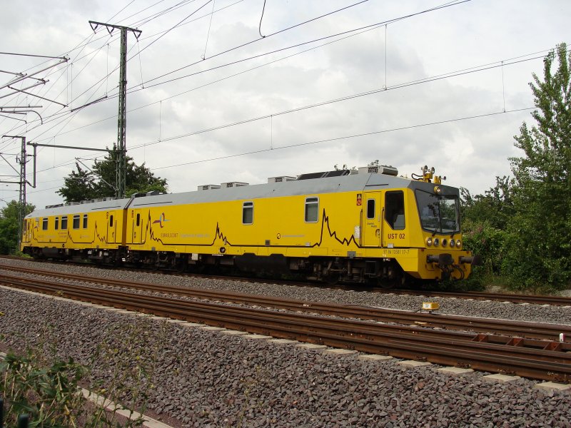 RTS 2016.907 bildete am 11.7.2009 gemeinsam mit WLB 9281 20000 90 diesen Bauzug und war auf der Baustelle zwischen Pm und Rw eingesetzt.