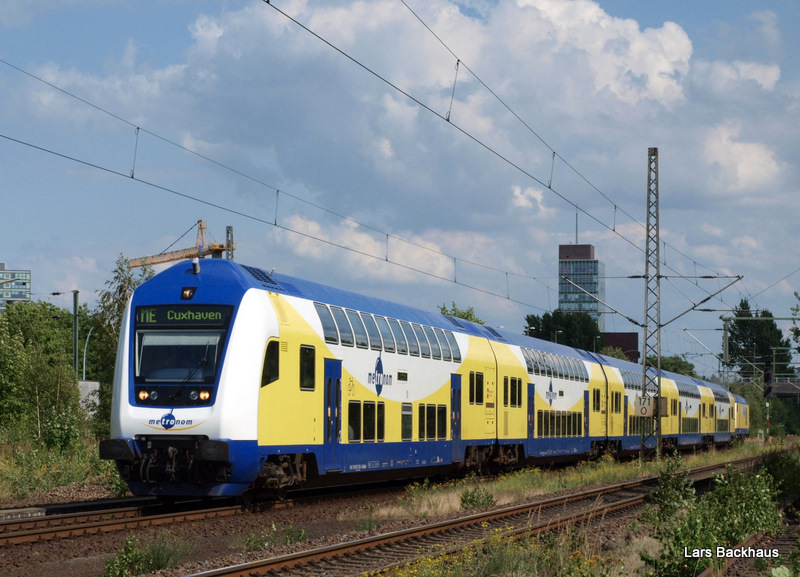 MRCE-Dispolok ER20-014 mit einem Reisezug der NOB unterwegs nach Westerland bei der Durchfahrt Bahnhof Meldorf.09.07.09.