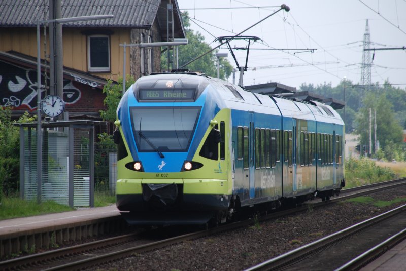 RHEINE (Kreis Steinfurt), 27.06.2009, ET007 der Westfalenbahn als RB65 nach Rheine bei der Einfahrt in den Bahnhof Mesum