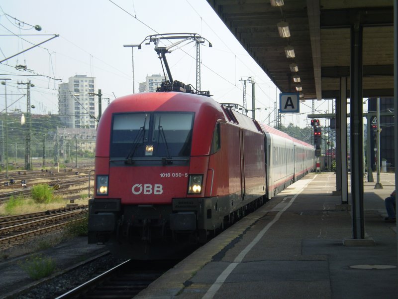 1016 050 mit EC 112 auf dem Weg nach Klagenfurt mit Kurswagen nach Zagreb.Hier bei der Einfahrt in den Stuttgarter Hbf.1.7.09