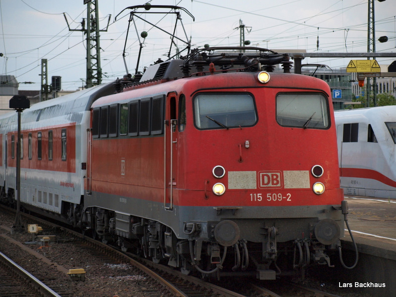115 509-2 als Lokportrait. Man achte auf die Räder, die so aussehen, als hätte sich die Dame die schon Viereckig gestanden. In wenigen Minuten wird sie den AZ 1379 von Hamburg-Altona nach Lörrach bringen. Aufgenommen am Abend des 6.07.09 in Hamburg-Altona.