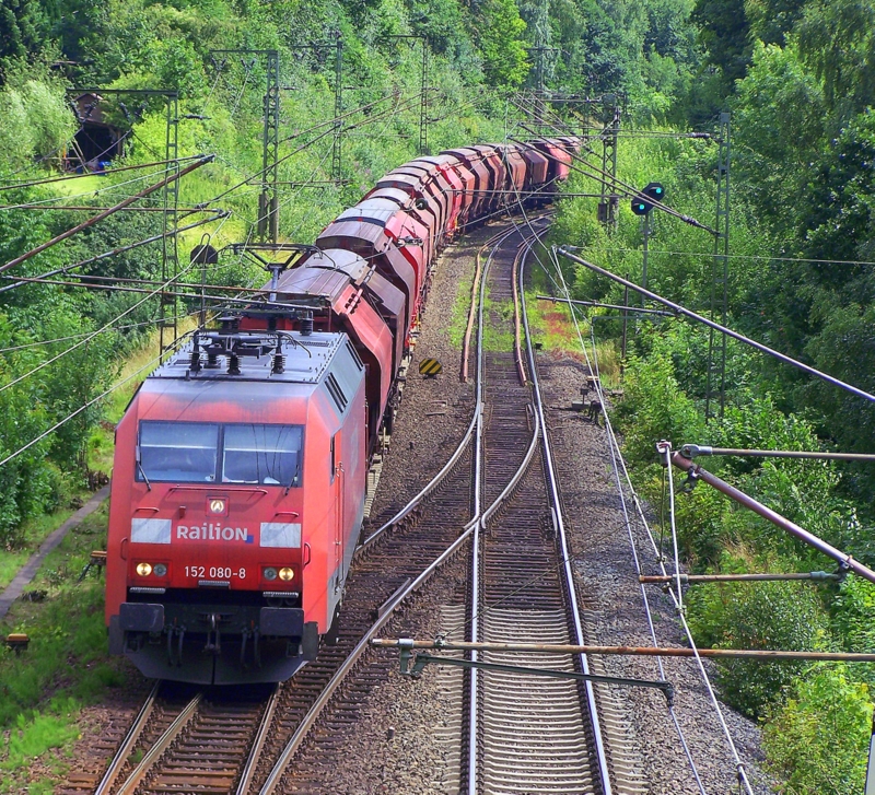 152 080-8 mit einem Güterzug aus Warburg(Westf) kommend hier bei Altenbeken.