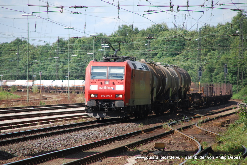185 183-1 (Railion) fährt am 15. Juli 2009 um 16:12 Uhr mit einem GZ durch Duisburg Entenfang