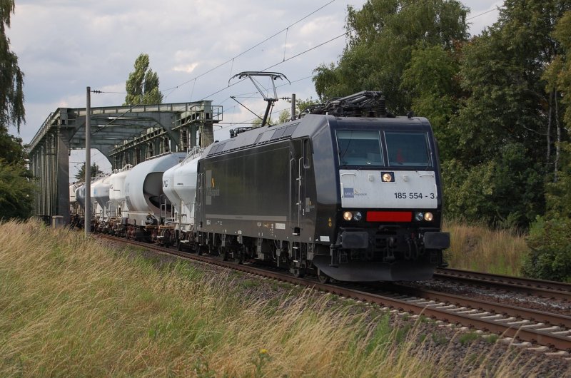 185 554-3 MRCE am 15.07.2009 kurz nach Überquerung des Mittellandkanals bei Peine