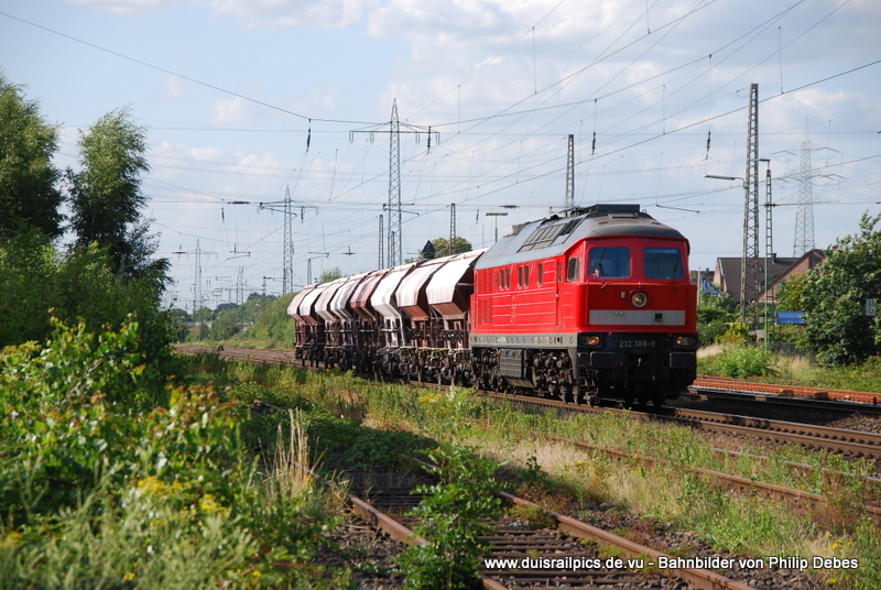 232 388-9 fährt am 15. Juli 2009 um 18:21 Uhr mit einem GZ durch Ratingen Lintorf