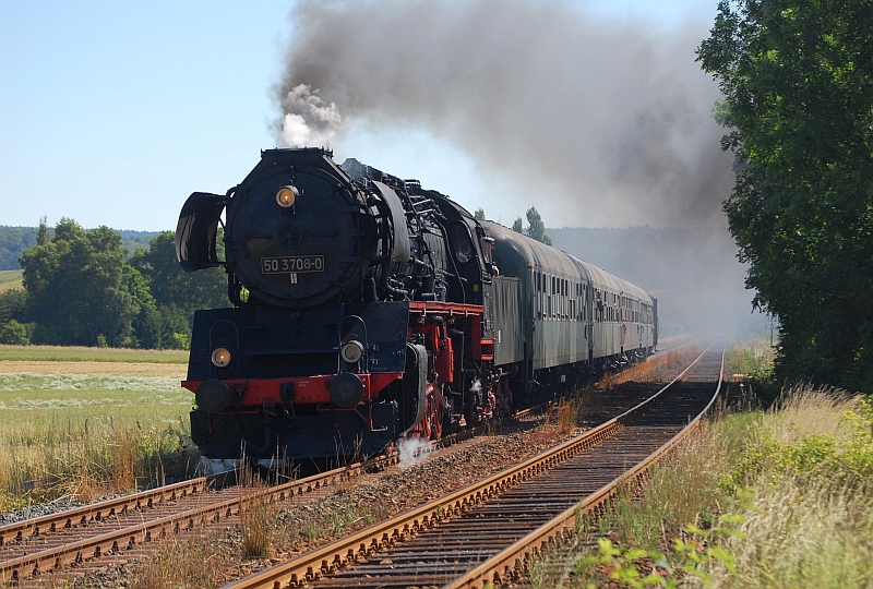 50 3708-0 mit dem SDZ nach Altenbeken, am 5.7.2009 kurz vor Stadtoldendorf