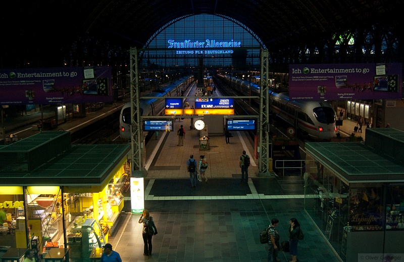 Ausruhen nach getaner Reise und einigen Fotos. Hier die Spätabendstimmung am Hauptbahnhof Frankfurt. Um 21:48 ist auch bei den ICEs bereits weniger Andrang. (13. Juli 2009)