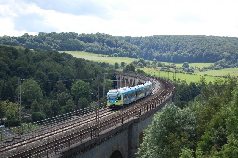 Br 426 (ET 004) der WFB als RB von Paderborn Hbf nach Herford bei der Überquerung des Bekeviaduktes kurz vor Altenbeken, 14.07.09