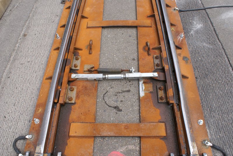 Detailaufnahme der Feder, die die Weiche immer wieder in ihre Ausgangsstellung zurückdrückt. Stadelhofen, 12.7.09.