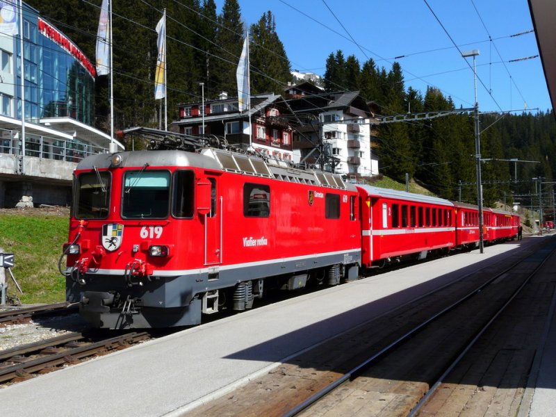 RhB - Ge 4/4 631 vor Regio unterwegs nach Arosa im Bahnhof von Litzirüti am 07.05.2009