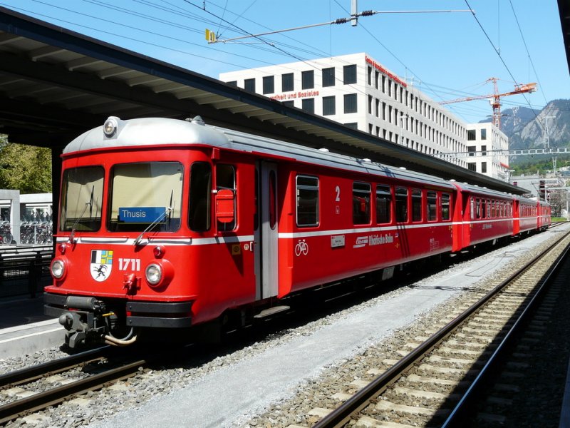 RhB - Regio nach Thusis mit dem Steuerwagen ABDt 1711 und B + B + Be 4/4 515 im Bahnhof von Chur am 07.05.2009
