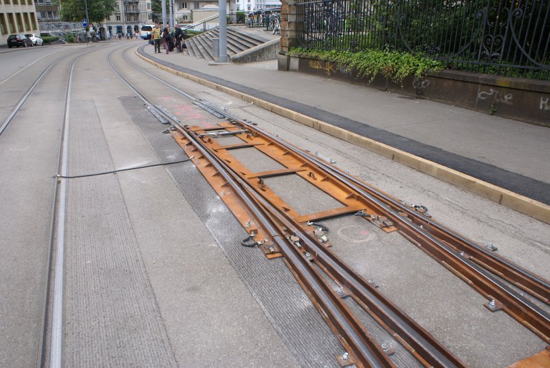 Seit der Nacht vom 10.7.09 auf den 11.7.09 befindet sich in der Steigung zwischen Stadelhofen und Kreuzplatz eine Kletterweiche, die es den Zügen der Forchbahn erlaubt, während dem Umbau im Stadelhofen das Gleis zu wechseln.